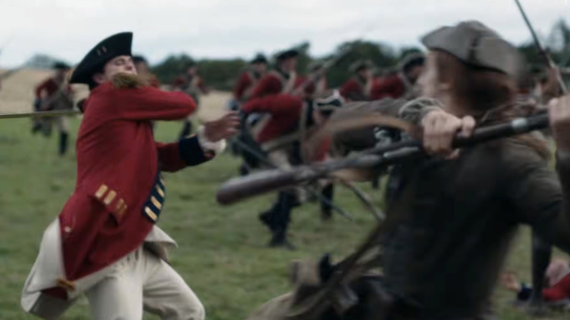(Loyalist regimental uniforms pulled by Kate Rogers, Joe Gorman, sized and tailored by Philip Winter)