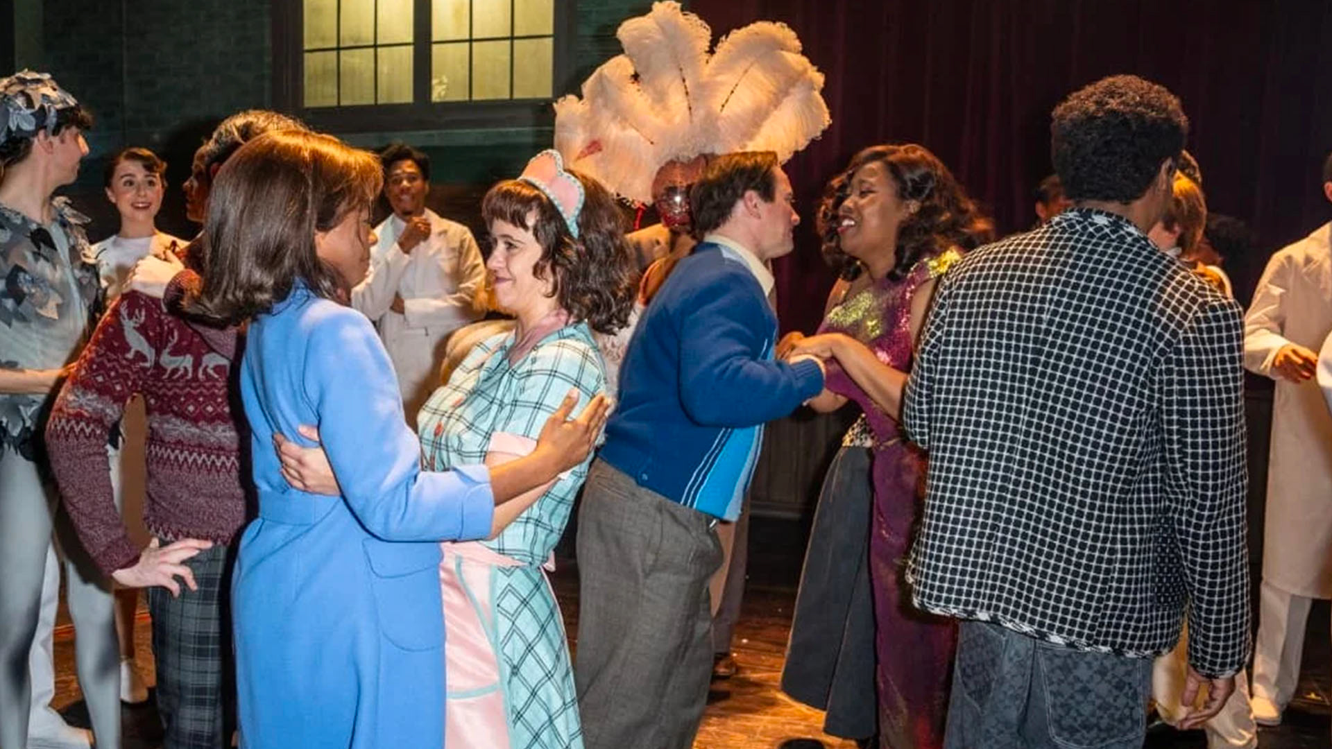 (Black and grey high school play costumes patterned by Stephanie Little, tailored by Kim Jones, Carol Wright, and Philip Winter)